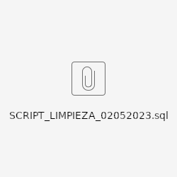 - Ejecutar el script de limpieza de tablas en la BBDD Esquema operac_sicoop (10.5.3.22). Ejecutar archivo SCRIPT_LIMPIEZA_02052023