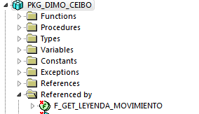 - En el PL/SQL ir a las opciones de Objetos / Recientes / PKG_DIMO_CEIBO. Buscar las Referencias y recompilar las que se encuentren descompiladas